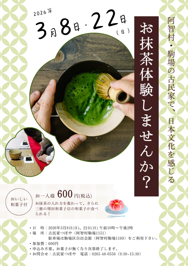 【予約不要】3/8(日)、22(日)気軽にお抹茶体験