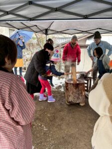以前の授業で東山道について林さんから教わった際に「道があった場所には人の暮らしがあった。木戸脇では少し掘るだけで土器が出る」と聞き、実際に掘ってみることになりました。担任の北沢先生は「実際に見ること・やることを大事にしています」と話します。