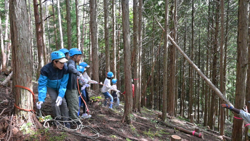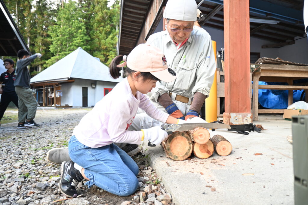 10月13日に愛知県からの小学2年生~中学生10名を受け入れ、浪合地区で間伐体験と、丸太を使って調理をするスウェーデントーチ体験を行いました。