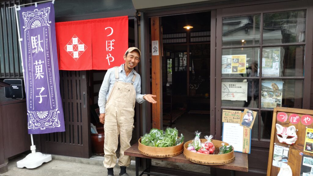古民家つぼやと、辻本屋(伍和・下郷)の前でも野菜を販売しています!