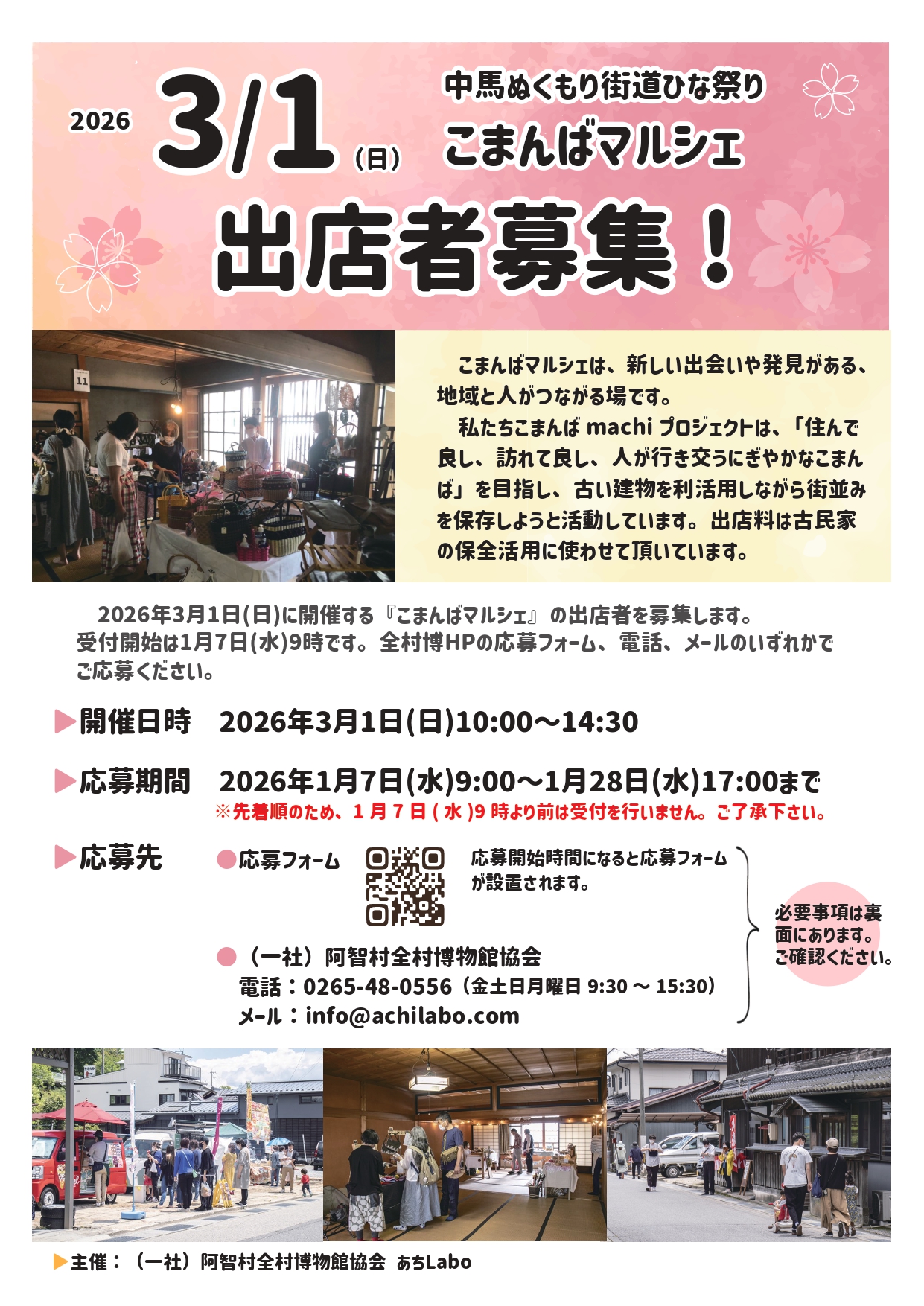 - 出店場所 古民家つぼや(阿智村駒場1151)、亀屋、旧駒場商店街 ほか