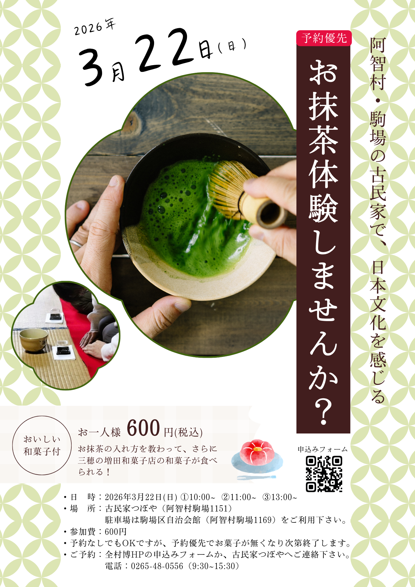 - 参加費 600円(和菓子付き)
