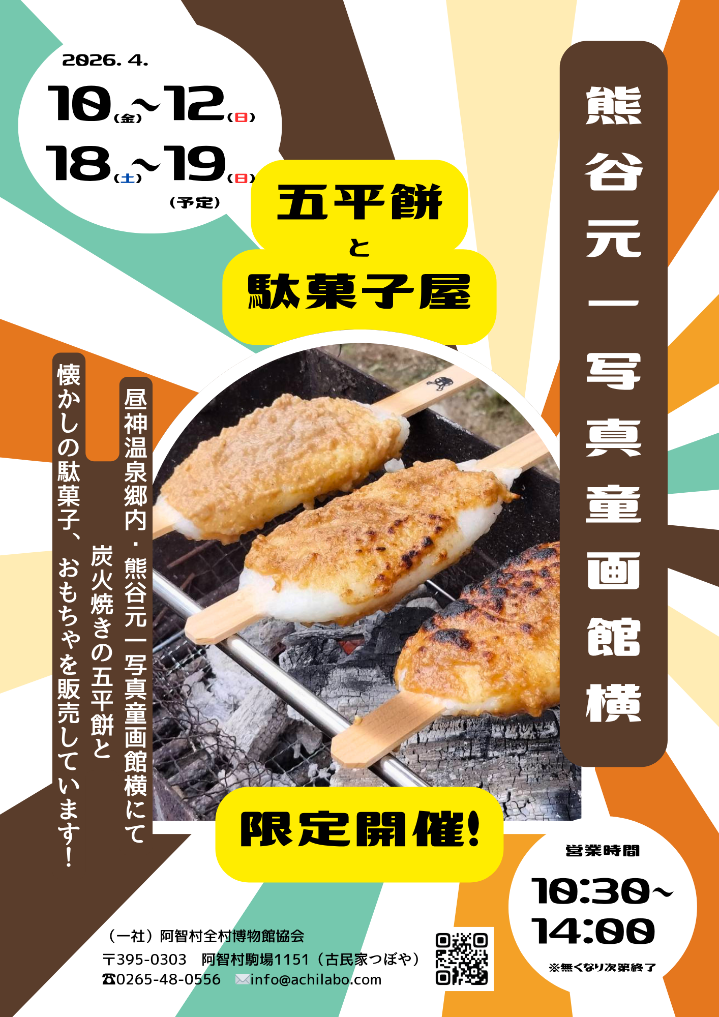 炭火焼き五平餅・駄菓子・おもちゃ屋さんを出店します!