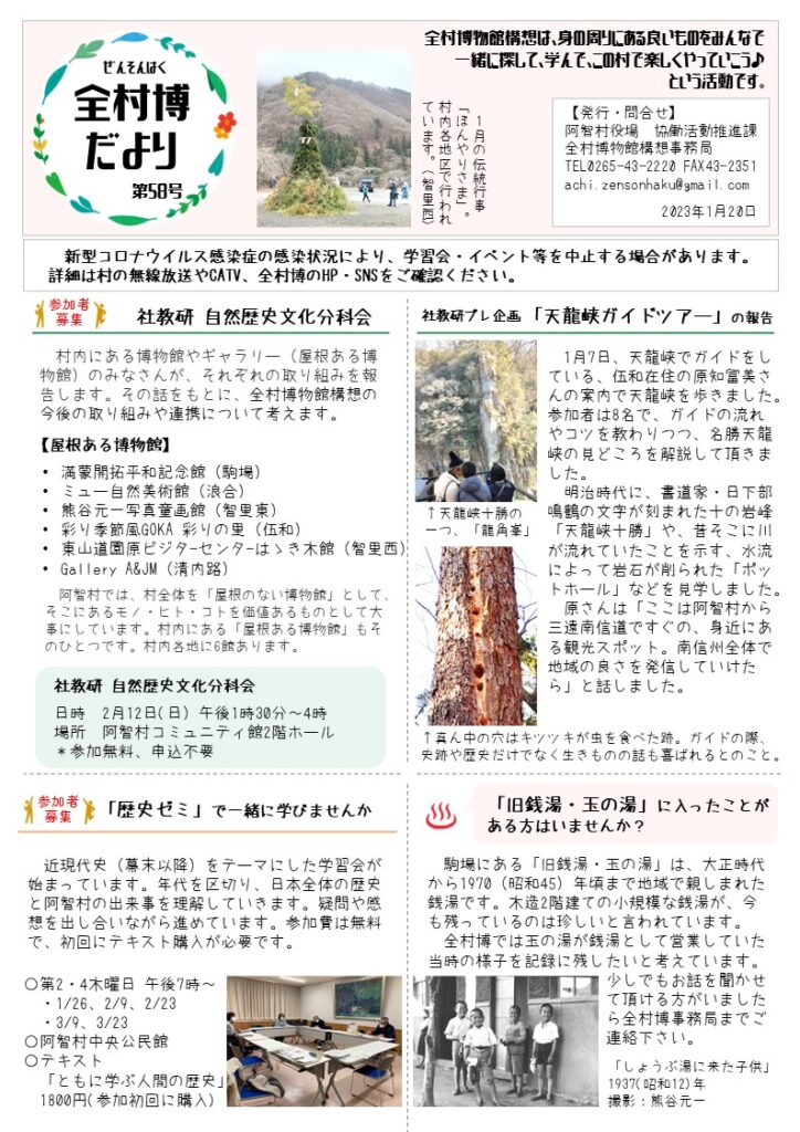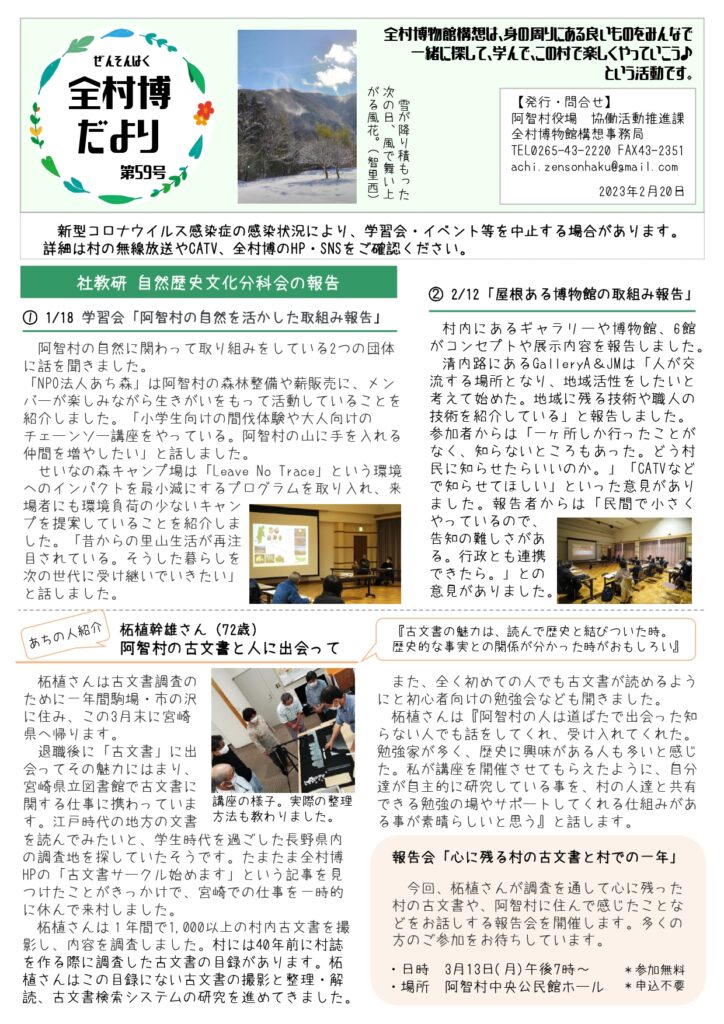 社教研 自然歴史文化分科会の報告 ①1月18日 学習会「阿智村の自然を活かした取組み報告」 ②2月12日「屋根ある博物館の取組み報告」 あちの人紹介:阿智村の古文書と人に出会って 【ご参加下さい】報告会「心に残る村の古文書と村での一年」 古文書調査... -